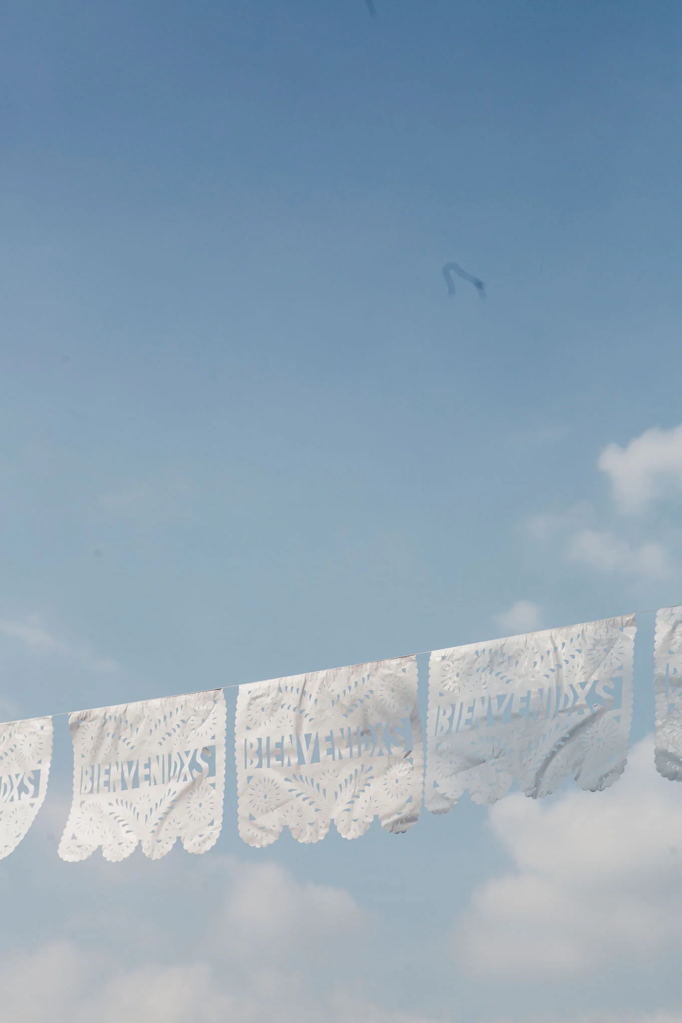 Cruzando el cielo se veía otro elemento tradicional, pero con un detalle muy significativo. Tiras de papel picado con la palabra “bienvenidxs” La x que busca la neutralidad del lenguaje. Un detalle que dice mucho sobre los novios. Cabe destacar que nosotros no podríamos estar más felices con la cantidad de detalles como este que tuvimos a cargo en esta boda. Es nuestra receta de la casa una boda así, llena de detalles que expresan el espíritu de los novios.